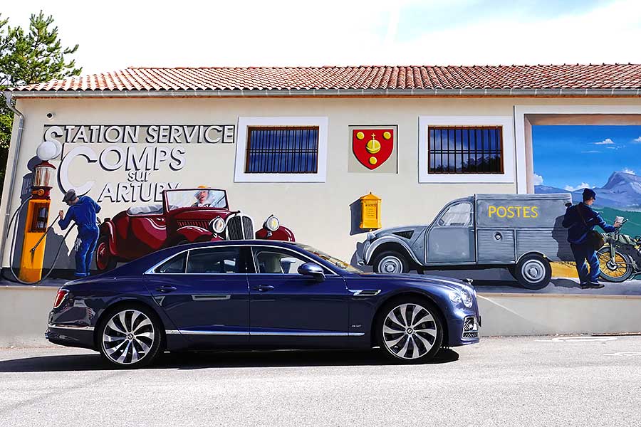 接下來的這條公路被稱為拿破崙之路(Route Napoléon),於1932年開通,起點是蔚藍海岸的Golfe-Juan,沿著阿爾卑斯山山麓一路向西北方向走,途中偶爾可見法蘭西帝國雄鷹雕像,其典故源自1815年當時拿破崙一世在這條路上經歷百日王朝,最後於滑鐵盧宣告終結。雖然故事帶點惆悵,不過沿途景緻相當優美,路途上的車輛都相當悠哉,就只有我把這部大房車當成GT車一路猛衝,要知這New Flying Spur並非普通角色,在山谷連續彎路間跑的既舒適又暢快,下盤過濾路面噪音的功力簡直神乎其技,功夫練得相當巧妙,或許在某些情況下會過濾些許高速操駕需注意的資訊,例如透過路面噪音及方向盤回饋為參考依據的體感速度,但基本上不會給你帶來太多困擾。