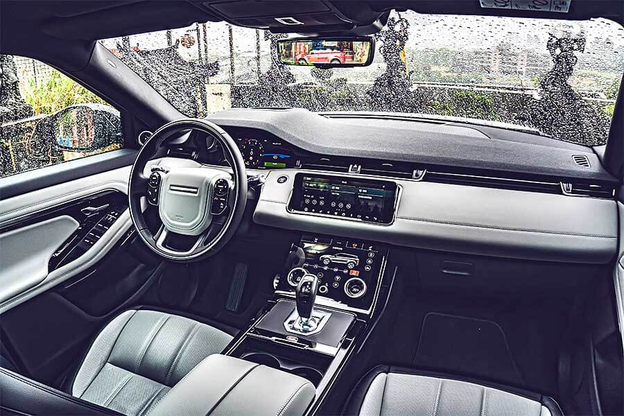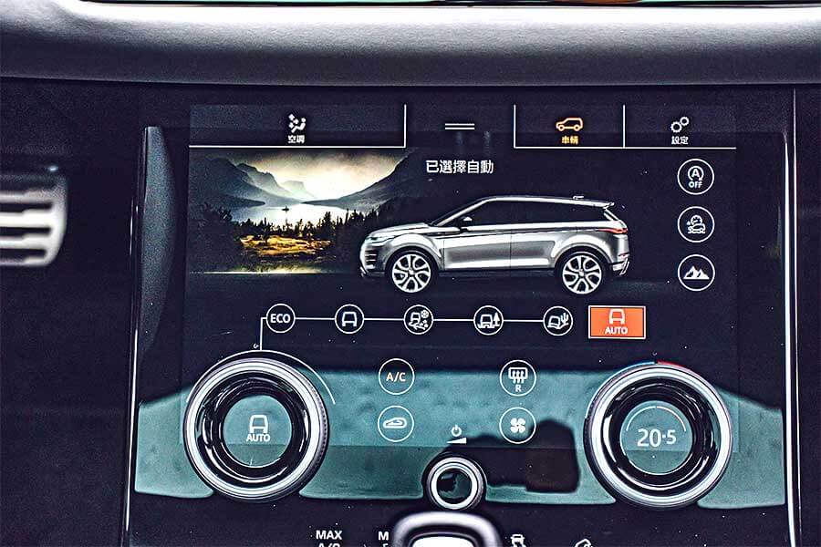而目前各式各樣的駕駛輔助配備,Evoque也沒欠缺,主動巡航、車道維持輔助等都萬事皆備;自家招牌的ATPC全地形行進控制與全地形反應系統依然是本車的招牌大菜,只要你捨得,土裡來泥裡去基本上不是問題。再來這兩項功能是我輩覺得相當先進與實用的配備,就是對地視野與車內數位後視鏡,雖然不一定沒事會去爬山涉水,但對地視野功能的攝影紀錄模擬畫面相當真實,憑實用在低速移車也是另一種減低視野死角的方式,數位後視鏡則是操作便利,就像是撥動傳統後視鏡的避光撥桿,後視鏡的畫面就會在真實鏡面與數位螢幕間切換,位在車尾鯊魚鰭天線內的鏡頭還可以適度調整視角高低,對於這輛後方視角較為狹窄的車來說是相當有幫助,而且在一整天不停的雨勢中,攝影機與螢幕反倒是提供了更好的視野與清晰度,至於你擔心電子配備日後使用的妥善率問題,在目前各式電子產品風行環境裡,壞與不壞是任誰也說不准,就有勞車主平時駕車多多禮讓、有空扶老人家過馬路來積福消厄吧!