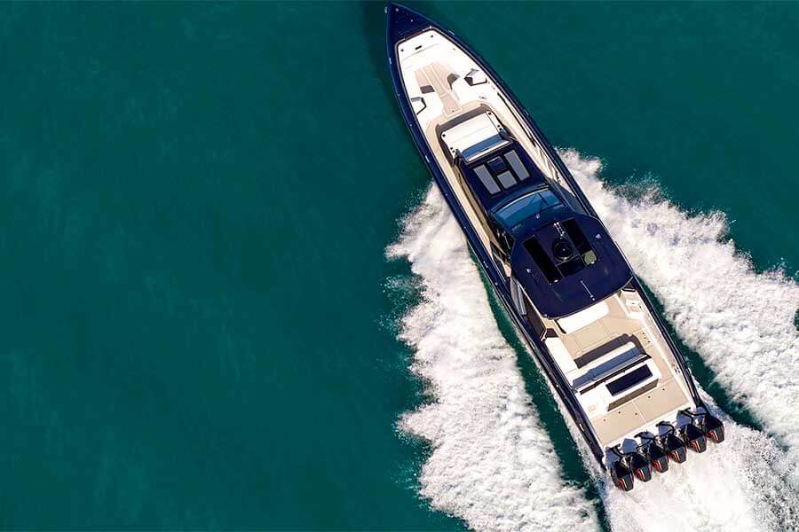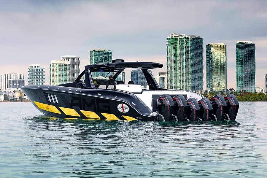 同樣在船尾位置,59’ Tirranna AMG Edition掛載了6具4.6升V8機械增壓Mercury Racing 450舷外引擎,一共可榨出2,700匹馬力,並使這艘快艇以129km/h極速在水面上飛馳。同時,為了使船隻在波瀾起伏的水域保持平衡,船上也裝配有可減少80%搖晃程度的陀螺穩定系統,以確保船上乘客不會吐得東倒西歪。另外,當59’ Tirranna AMG Edition須以慢速靠泊碼頭時,船艏與船艉兩處另裝有推進器,以便停靠作業。