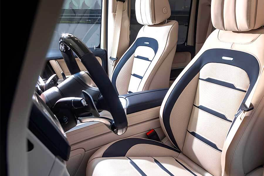 此時,望向佇立於碼頭邊的Mercedes-AMG G 63 Cigarette Racing,除了披著相同的黑金雙色外衣,前保桿上還特別加裝了堅固的防撞桿,車側則可見到四顆專屬22吋AMG款輪圈,以及側踏板。內裝部分同樣由與米黃與深藍兩色Napa真皮構成主視覺,並配有Cigarette Racing字樣裝飾的地墊與副手座前把手。動力則與市售版G 63規格相同,腹內身懷一具4.0升V8雙渦輪引擎,必要時可供給585匹馬力與86.7公斤米扭力的強大火力掩護。