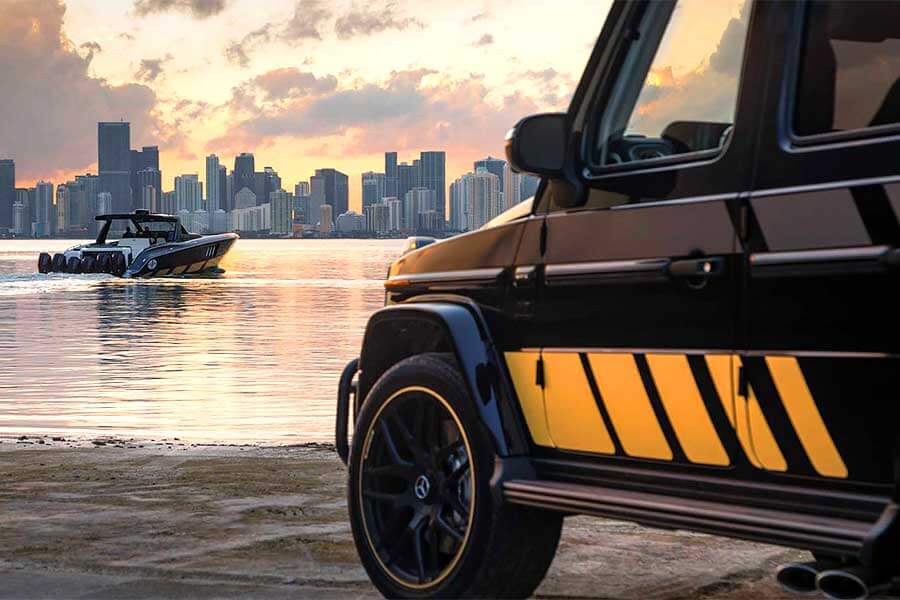 自2007年起,賓士與美國船艇製造商Cigarette Racing已有11次合作經驗,並分別推出了像是受Mercedes-AMG Project One、Mercedes-AMG GT R或Mercedes-AMG GT 4-Door Coupe等高性能跑車啟發設計靈感的客製化快艇。2020年邁阿密國際船舶遊艇設備展上,水陸兩大性能品牌第12度聯手,並帶來了設計深受德意志硬漢G-Class影響的全新快艇59’ Tirranna AMG Edition,以及與其搭配一組,世上僅此一輛的Mercedes-AMG G 63 Cigarette Racing。