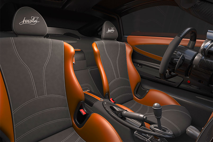 在這部被帕加尼視為「車輛實驗室」的超級跑車身上,不僅有許多重要的發明被使用、開發與測試,同時也配備了一些過去已使用在Roadster BC,或者即將成為未來車款特色的創新設計,例如巨型尾翼、後擴散器、車側進氣口、車頂進氣裝置等瘋狂的空氣力學設計。而且在主動空力系統的合作之下,Imola不僅在外型上展露了比Huayra BC更加強烈的侵略性,同時對於賽道駕馭、安全性與圈速提升皆有所助益。