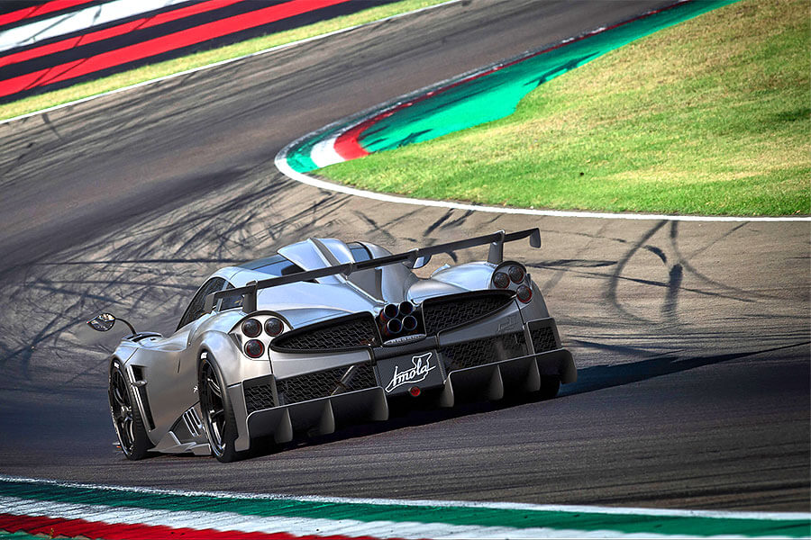 不過明明是Huayra的衍生車款,但車名為何卻取作Imola呢?除了因為這條賽道是許多車迷心目中的聖地,以及上演過許多甜美的勝利與痛苦的悲劇之外,更主要的原因是這款超跑的開發與測試作業都是在這條賽道進行。而在經歷了總計16,000公里的嚴厲測試之後,這款僅限量5部的頂尖超跑終於取得離場許可,並趕在日內瓦車展前夕將它先前被一團迷霧所籠罩的外型與技術規格公諸於世。