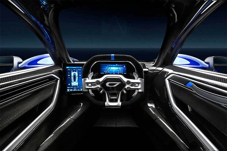 除了劃時代的油電技術,以及超越時代美學的外型,Czinger 21C就練駕駛艙也採取了相當獨特,且類似1922 Yamaha OX99-11 Concept的縱置前後雙座設計。對此,車廠創辦人Kevin Czinger則表示此番設計靈感主要受摩托賽車(superbike)啟發,因為中置駕艙無論是對駕馭、操控或情緒都是最理想的選擇。而從方向盤直接望出去的視線、後頭傳來的引擎運轉聲浪,以及同樣取採類似設計的兩部超跑McLaren F1和McLaren Speedtail來看,他的論點可真是一點也都沒錯!