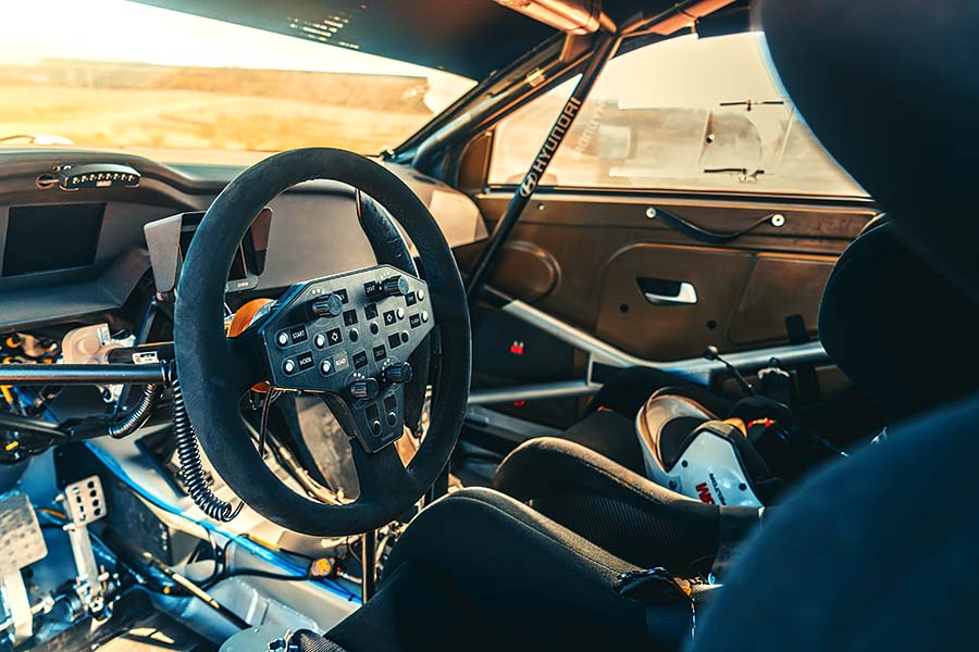 越野賽車擁有最好的駕駛位置,高度足夠讓你看清四周環境,手肘一夾就可以碰到方向盤,但胸口和方向盤絕不會發生肌膚相親的情況,因為五點式安全帶會把你牢牢扣在你有生之年所見過最好的座椅上。越野車隊果然很清楚車手感覺舒適對於操縱機器一事何其重要。右手略為離開方向盤輕輕一彈指關節,恭喜恭喜,你已經做完降檔動作,升檔亦不外乎用同一幅度動作輕輕一拉同一塊半月形撥板。手煞車?近在右邊三吋之外,雙腳腳跟並無需要移開踏板前的地板。