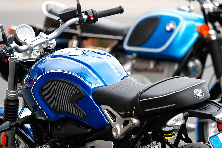 見到R nineT /5的第一眼,再看看旁邊那輛不知是翻新過或從新車就一直收藏著的R 75/5,兩者之間畢竟有著50年的差異,車架、引擎與騎乘姿勢的設計手法都有著顯著差異,不過我覺得R nineT換上這樣的塗裝確實比過去更深得我心。細看那顆向過去致敬的油箱,藍色漆面採用特殊的魯冰花籃,再結合兩道白色條紋,還有/5的50周年紀念徽章,讓人不盡遙想起過去那沒有太多束縛的自由年代,雖然當時的重機性能不比現在,但高興去哪就去哪,享受速度也無須顧慮一堆超速相機…….。