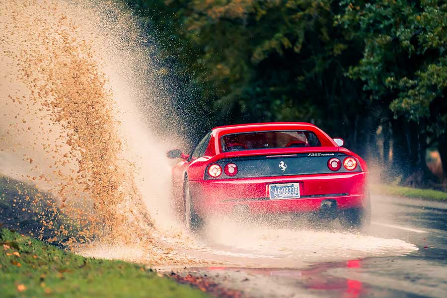 我們聽到它正在靠近,其聲有若情挑維修道限速器的MotoGP戰車。猶未見到Rosso Corsa一點紅劃破潮濕灰暗的大地,Jeff Segal的法拉利F355已經先聲奪人。他進入停車場時更刻意衝過入口旁邊的小水窪咯咯大笑濺起一陣小水花。