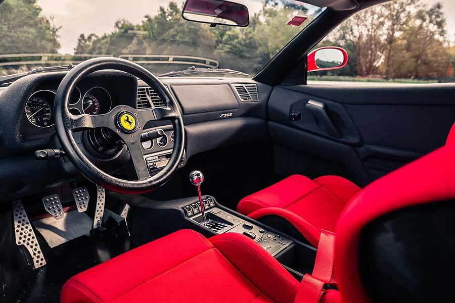 從他口中逐點聽取詳情後,我幾乎不想開這部車。因為我覺得這件事非同小可,所有在成長期間經常看VHS和回帶機的車痴也應該有同一想法,尤其是當你發覺這部車上有一根古色古香的金屬排檔桿。我投身這個行業時,正值法拉利背棄手排。所以第一次使用法拉利極具代表性的開放式排檔,對我來說是夢寐以求的人生大事。這些排檔座簡直是藝術結晶,就算下面隱藏着冥頑不靈的齒輪法陣,絕跡江湖仍然是一件令人扼腕的憾事。