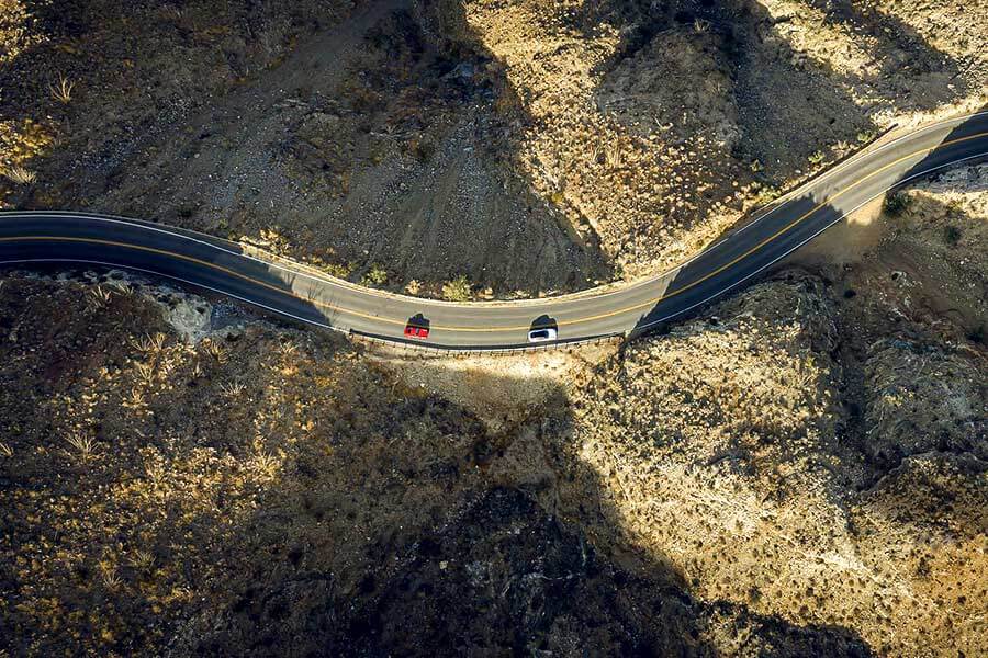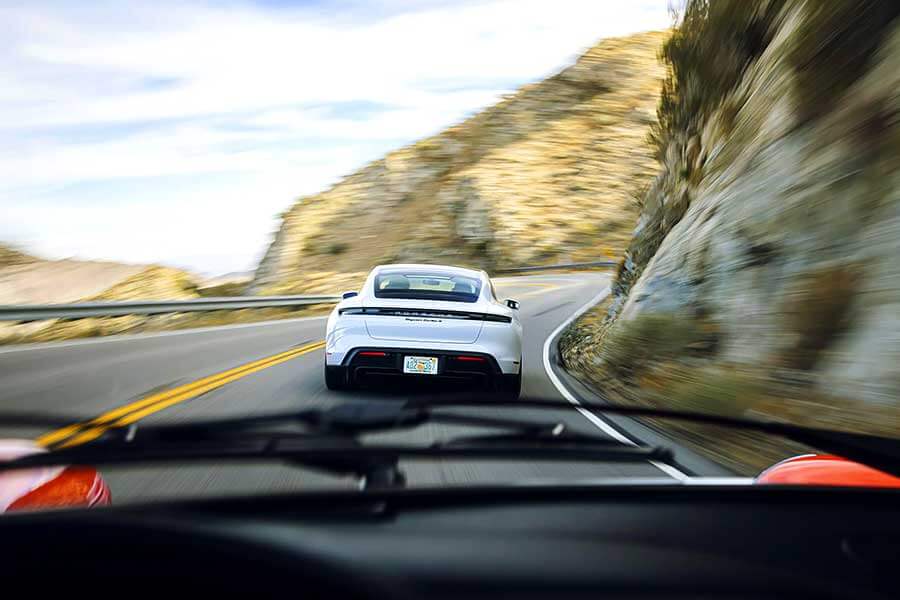 過了一會兒後,我總算回復平靜,於是喝了幾口水,一邊欣賞這片四面環山的灼熱平原,一個滿目褐色或深或淺唯被一條黑色公路從中破開的平原。我滿腦子只有一個想法:若說911是所有保時捷後進務須秉承的傳奇,那麼此時此刻盡得天時地利的RS肯定是最高不可攀的傳奇。傳奇也好,陳腔濫調也罷,能夠風行多年畢竟有其道理,這部RS正是此中典範。想到這裏,我不禁心滿意足長嘆一聲,然後深深吸了一口氣望向默然立於RS旁邊的Taycan Turbo S。這輛保時捷看來很巨型,外形雖然養眼,但尺寸真的很大,感覺好像我們的小型Area 51突然出現了一個天外不速之客。驚愕過後卻冒出了另一個想法,一個純粹主觀的直覺反應:電動車在這等尤物面前根本不成氣候。