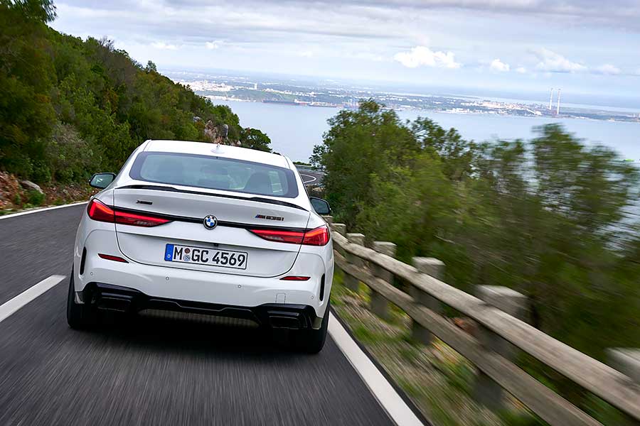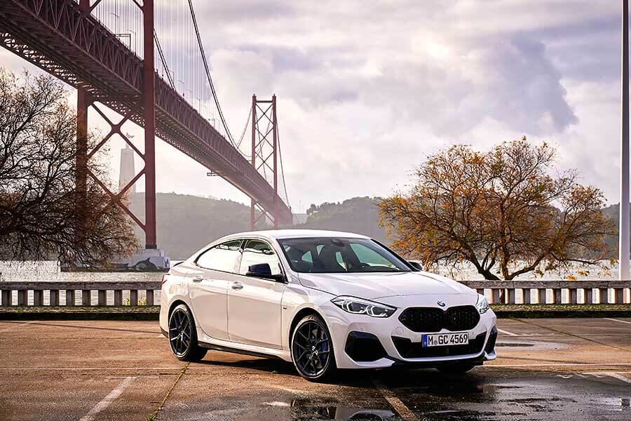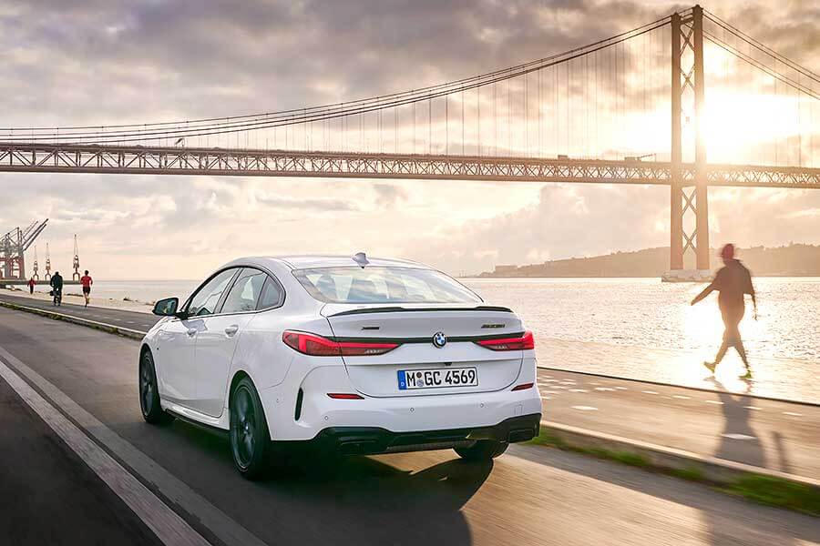 天光漸亮,白色與灰色2 Series Gran Coupe已在貝倫塔旁列隊等著我們,甚至連路口還有警方待命,請放心不是攔酒駕或抓超速,可是專程為這趟試車進行交管的,你說有多貼心吶……。停在岸堤上的M235i xDrive Gran Coupe就如同年初台北車展那樣有型有格,而且在戶外的自然光線下更突顯其玲瓏浮凸的線條,即便與一般2 Series Gran Coupe共用相同車身鈑件,不過有了M Performance空力套件加持,加上18吋跑胎與粗似迫擊砲的雙排氣尾管,相較於另一邊廂218i GC顯然威猛許多。畢竟身為寶馬M系家族的最新成員,肩負著引領俗家弟子拜入門下的重要任務,尤其在現今許多年輕人已經不像過往那樣將車視為進入社會的首要目標,手機與穿扮比車更重要,要如何讓年輕人重新對車燃起熱情,讓他們多看你一眼並開口說「老兄,你這部車很正啊!」,M235i xDrive GC確實有此必要。