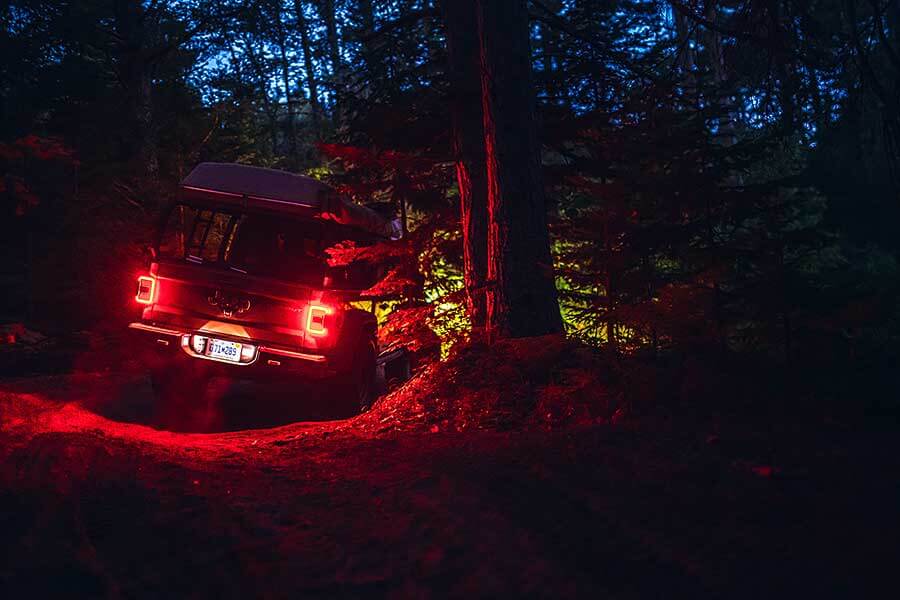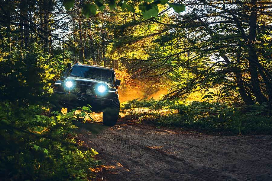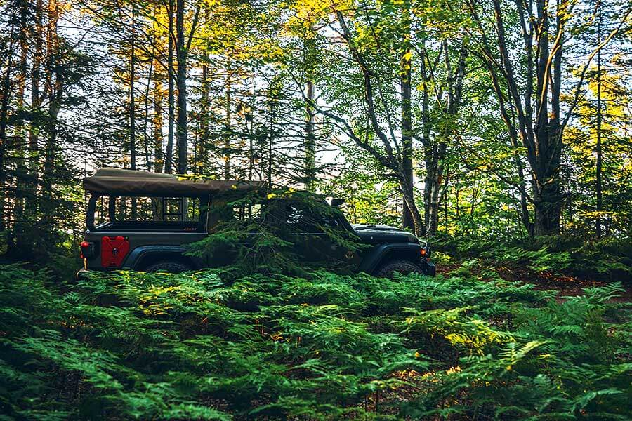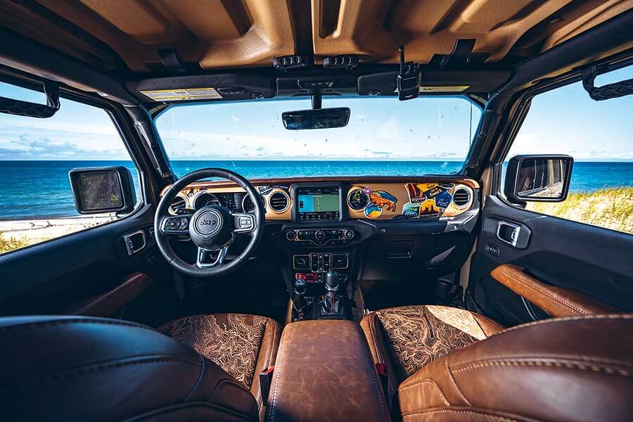 至於車室內,用上馬鞍皮革的座椅以Moab地形圖作為花紋,儀錶板上貼有好些貼紙表明設計師心儀的野外地方,其他設計和設備則與標準型Gladiator無異。儘管繽紛程度未至於令人尷尬,這部車在城中出沒還是未免有點格格不入。於是沒有做甚麼事前準備的我翌日一覺醒來便幻想世界發生大亂,馬上開車出城奔赴預先決定好的逃生目的地,一路北上直搗密西根上半島。