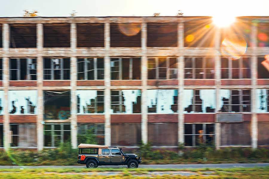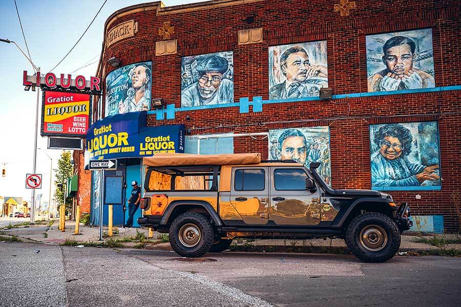 不過底特律仍然很有大城市色彩,Wayout在此出入難免顯得牛高馬大,令我覺得自己好像白痴,居然開著一部非常光鮮,而且顯然未經人事的開荒機器在時尚夜店門前一掠而過。就算Wayout的設計都經過深思熟慮,在城市內或多或少會給人惺惺作態的強烈印象。其實坊間有好些營車出身的4×4過於依賴「裝備越多越好」的策略,車上所有可以用的位置都用來安裝照明裝置、支架、太陽能電池板或廚房星盤,效果恍如身上塗滿工業用強力膠去Mountain Warehouse店內橫衝直撞了一輪。個人以為野外露營應該稍為從簡,多一點融入四周,而不是單單把現代生活的方便事物一一帶到野外;野營的意思可不止於把現代生活變成12伏特撐腰的隨身便利屋啊。
