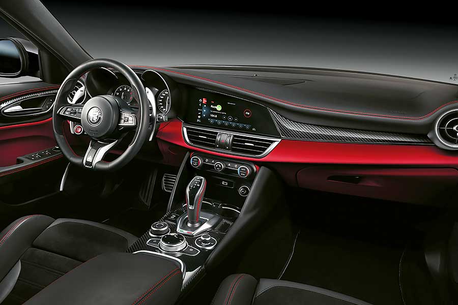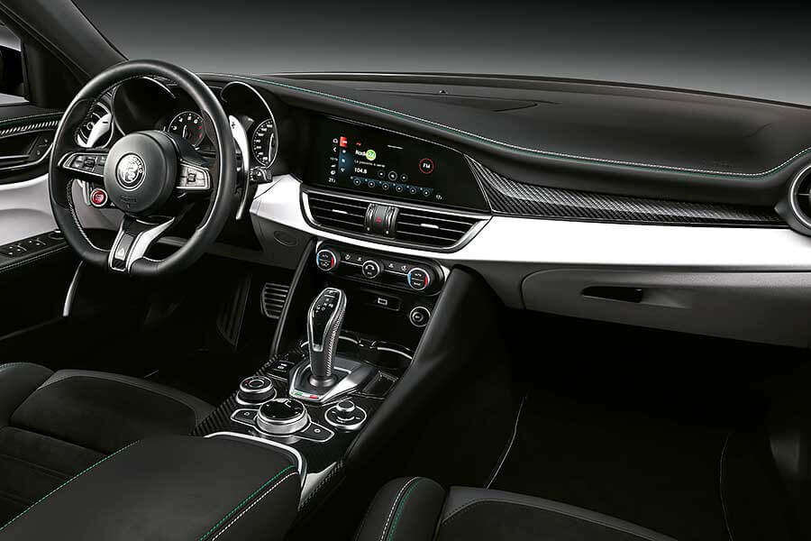 進入車內,8.8吋中控螢幕在換上反應更快的處理器之後,現在不僅可透過手勢進行操作,另可使用語音輸入與搜尋導航目的地。而針對目前市場上愈來愈注重的智聯網技術,全新Giulia和Stelvio Quadrifoglio除了可透過導航系統將即時路況顯示於中控螢幕之外,另可透過手機遠端遙控開關門鎖,此外車內亦提供有最多可支援8具行動裝置同時上線的無線網路。