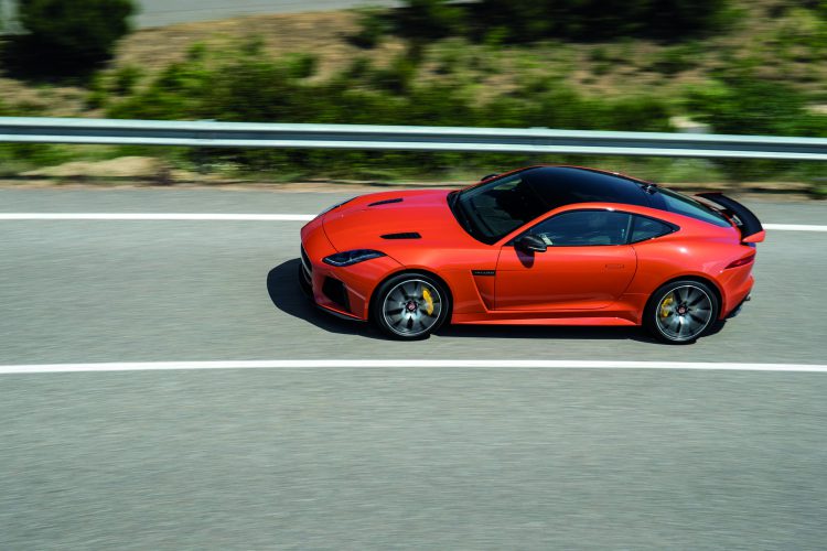 為何一開始便說SVO?因為連我自己也搞不懂這部門現在是怎樣。所以,也希望大家多了解一點。說回F-Type SVR,SVO用了F-Type R AWD為基礎,把引擎馬力從550匹調升至575匹,內裏的調校沒有詳細說明,只講這副引擎跟F-Type Project 7是近親,扭力由原來的69.4kgm提高到71.4kgm。0-100km/h數據也由4.2秒縮減至3.5秒。極速的變化從300km/h升至320km/h(200mph)。如果單講馬力,這個R似乎有點讓大家失望,增加25匹,車身最多減磅50kg,用股民術語來講,只有4.5厘米,重量方面,也不過是3%左右,似乎回報率不高。若單從數據來說,SVR沒有法拉利、保持捷那些高性能特別版那麼大回報率的。不過,R這個字在捷豹來說,似乎不只是數據上好有話題的符號。我在西班牙開了coupe和roadster版的F-Type SVR,這型號確實沒有在性能表現上把F-Type變成完全不一樣的汽車,那差別不是F430 vs F430 Scuderia或911 vs 911R,原本我也有點失望。但跑了公路,跑了賽道,跑了WRC Catalunya賽站的某段山路之後,我反而覺得它是另一種R。