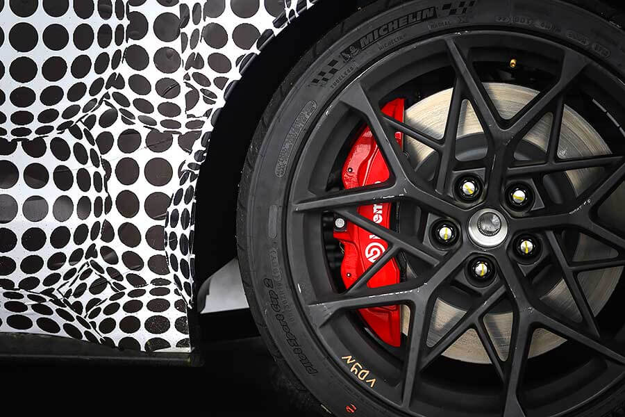 根據原廠目前所提供的三張預告照所示,全新Ford Mustang Mach 1標配了大尺寸Brembo煞車系統、Michelin Pilot Sport Cup 2配胎,以及散發來者不善氣息的四尾管、尾翼和後擴散器。當然,最大的賣點也包括了現在還隱藏在黑白花紋偽裝底下,仿效1969年原版車型風格的水箱護罩,以及目前仍保密到家的輪廓與線條。