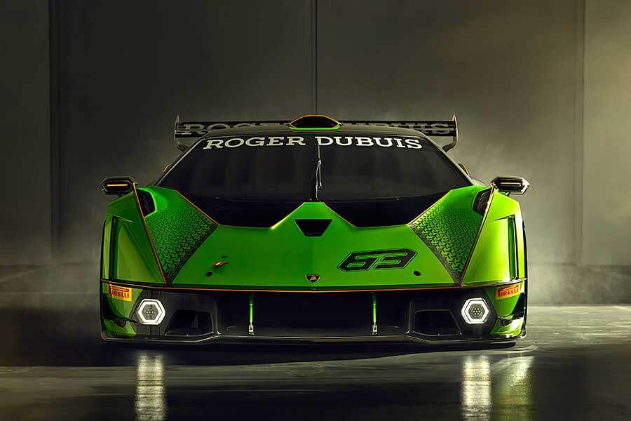 卸除原先的橘色偽裝,Essenza SCV12乖張的真實面貌終於在世人面前顯現。正如先前的預告照所示,車頭部分可見大型碳纖維前擾流和空力鰭片設計,而當車速愈快,前行兩廂蓋兩個諾大開口則可為車頂進氣裝置導入更多引擎冷卻之用的新鮮空氣。對於非常講究空氣力學的賽車運動,原廠對於Essenza SCV12空力性能的煞費苦心從超大型側裙、氣流通道、前19後20吋美鋁合金輪圈、可調式巨型尾翼和後擴散器便可略知一二。根據原廠說法,當Essenza SCV12車速達到250km/h時,產生出的1,200kg強大下壓力更是遠遠勝過GT3賽車許多。此外基於安全,以及能在比賽時於維修區更換車手的考量,設想周全的藍寶堅尼也將車殼改為三件式設計,以利車隊或救護人員必要時的使用需求。