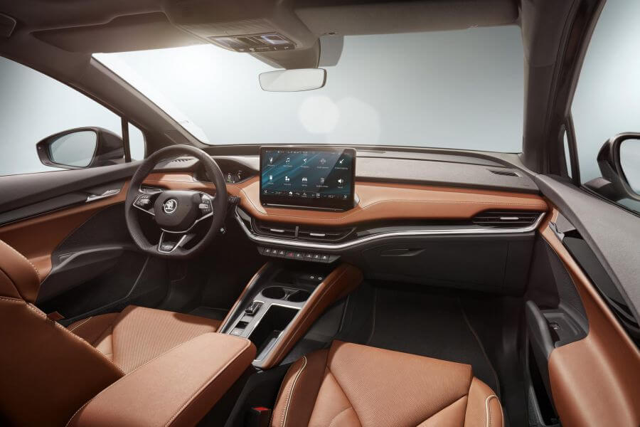 車室內裝部分同樣是非常接近現有車型的鋪陳與架構,主要放上一面13吋螢幕負責多媒體、空調等車輛控制所用,這也是電動世代的車室特色之一,方便車主進行更即時與多樣的設定或功能調整,不過Enyaq還是保留了傳統儀表的設計,只不過採用較小的尺寸設定,讓傳統駕車習慣中比較常用的資訊集中在此。另外在內裝的細節處理上就很有目前Skoda的精緻風味,例如橫亙整個控台的玫瑰金飾條,而且內裝用料也將會有多達10種的組合可以搭配,其中自然也包含以塑料或回收以及植物萃取材料所製成的配置,而且各項設定都非常就手易用,並不強調創意或家徒四壁的極簡語言,這點絕對會讓廣大的務實車主在電動車與燃油車之間無縫接軌的使用。最後廠方在第一波Founder Edition限定版車型將以與創廠年分1895年相同的數量生產,極富創廠125年的紀念意義,也表示Skoda也將會與這1895位乾爹or乾媽展開一番全新局面。