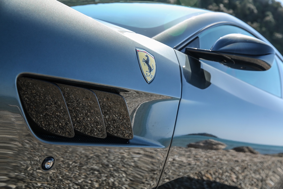 這時處於Sport模式的下盤雖變得剛硬但回饋的乘坐感依舊平順,我還有閒暇時間觀看路人見法拉利呼嘯而過的羨慕神情,這時V8渾厚的引擎聲在山谷間迴盪,運勁連消帶打氣勢如虹,方向盤回饋力道輕巧敏銳,一招一式全在預料之中,但或許道路條件及彎角還未到需要PCV後輪轉向出手,那結實的屁股仍相當安穩,至於SSC3滑移角度控制及電子褓母就更別提了,只有繼續待命的份。在這個階段可以看出它雖然身為GT,但享受開車及駕馭樂趣的優先順序仍在舒適之前,或許方向盤上頭的按鈕式方向燈開關、源自F1的Manettino旋鈕及金屬換檔撥片,對一部GT而言是浮誇了點,但其實只要你開過458 Italia之後的任何一款法拉利就知道非常容易上手,你不需要分心到整合介面的大螢幕裡頭去尋找避震器軟硬、方向盤輔助力道、變速箱換檔速度或循跡介入程度等設定,因為方向盤上頭的所有開關就能搞定一切,讓你全心全意專注在駕駛這件事上頭。