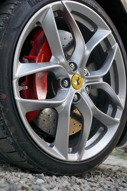 按下紅色Start鈕,後頭如預期傳來“轟”的一聲,那是絕不會認錯的典型法拉利聲浪,音階雖比V12低了幾度,但保證不假。用力疾點幾下油門,連續數聲轟隆音爆伴隨方向盤上頭閃爍的轉速訊號燈,這已是我試駕法拉利的例行暖身開場,但就在我開心看著瘋狂擺動的轉速錶指針而發出”咯咯”痴笑的同時,一位原廠人員神色匆匆走過來說:現在時間有點早,很多當地居民尚未起床,請勿打擾到他們……。果然相當義大利,近千年歷史的古城到現在都還住著一些居民,這是我從來沒想過的,為了不擾人清夢,逼的居民舉布條抗議大喊還我們寧靜的環境,我只好讓右腳像踩在釘床上似的輕輕觸碰油門,下壓幅度控制在零點幾耐米的範圍內以史上最溫柔的方式出城,不過車子一走沒幾公尺我便察覺GTC4Lusso T真有些不同,扭方向盤的氣力明顯比V12輕了些,走在石塊鋪設的路面上避震器也跟顛狂這類的形容詞劃清界線,這跟印象中的法拉利或甚至是V12的GTC4Lusso不盡相同,不過對一部GT而言是好的開始。