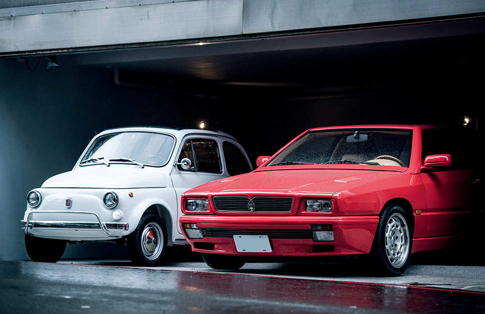 那是一棟不算舊的大樓的一樓,有個獨立車庫,裝潢過,目測大概可以停兩台車。果然,靠近後發現鐵門已經拉開,裡頭停的就是500,還有一輛瑪莎拉蒂Ghibli GT,一白一紅,有點日本人的作風。