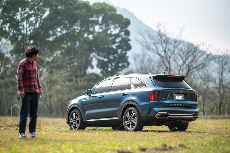 拿車的當下也是我跟Sorento的第一次見面,本人比照片更有型且風度翩翩,相當諧調的車身比例,車內三排座椅的胃納量也不小,就算真要在這個大傢伙艙內渡一宿應該也不成問題。由於內外設計皆相當出色,反而讓我對車頭愈加在意,總覺得五官的演繹手法太過刻意而顯得矯揉造作,不過若將視線轉到車側,C柱下方往上勾勒的牙尖卻又有如神來一筆,瑕不掩瑜。