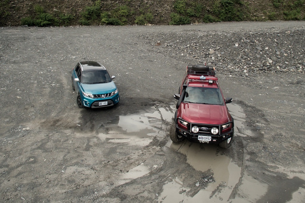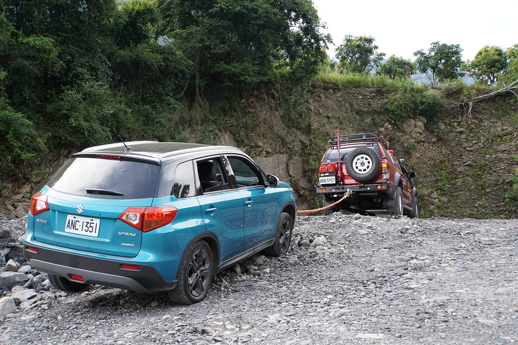 為了讓越野之旅更有看頭,TG特別商借Suzuki剛上市Vitara,上次我在原廠設置的越野場地一試脫困能力後,就對這台車印象甚好,1.4L渦輪引擎雖不大亦夠用矣,畢竟其以都會之名打造,無非希望你在台北101附近開開便是,千萬不要一時鬼迷心竅拿去旁邊象山試爬坡能力。既然目標客群都不一樣了,原廠更大膽地喊一句「去去武器走」將H型大樑取消,換上轎式底盤,但強力呼告之前令人驚豔的越野能力並不會因此消失,這算是這趟路的第二個目的,TG好想看看在真正需要脫困環境中,Vitara表現究竟如何?