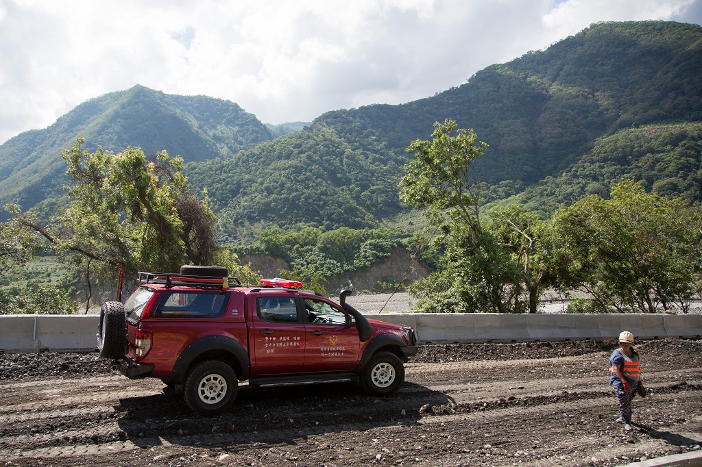 不過還好這畢竟只是一趟教學之旅,我們沒有打算要利用同行打火弟兄職權硬闖山神崩潰禁地,找了一個風災沖出來的河道邊,陳和皇便開始傾囊相授,然而我們不是《駭客任務》裡輸入程式就會開直升機的崔妮蒂,短短一個小時怎麼能消化陳和皇幾十年的實戰經驗和研究心血?只能抓住重點、特別講幾個開越野車一定要注意的事。首先他說明了2H、4H、4L(俗稱加力箱),以及Lock的差別。2H就是後驅模式,4H則是四驅模式,也就是所謂的「中差鎖定」功能,平均分配前後軸動力。4L簡單講就是4H的低速模式,相同的油門,4L的車速會比4H慢上許多,可承受更高的載重。最後是Lock,它的功能同樣是鎖定差速器,不同之處在於它平均分配的是左右輪動力。