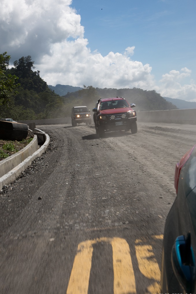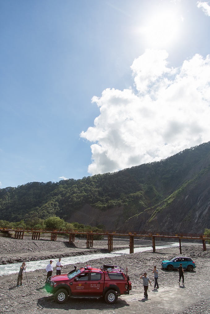 話說Tomi那通電話還沒講完,視線前方便出現一輛看就知道非比尋常的Toyota Land Cruiser,緊黏在它前面的是高聳雄偉Ford Ranger,「咦?深山裡怎麼會有這等好貨?」說完我們倆隨即像是知道什麼,拉起煞車排入P檔瞬間開門衝下車去,帶著自以為不卑不亢45度鞠躬哈腰「不好意思不好意思,原來是在寶來會合阿?我們以為在桃源呢」。這時本來就迅速在車身周邊移動的對方三人皆面無表情,只有其中一位戴著墨鏡、激似八點檔本土劇裡臨演黑道的一位大哥舉起拳頭,「誰是副駕?」Tomi呆了漫長的1.5秒後如夢初醒,「是我」,大哥突然張開拳頭,丟出一支與他氣質不符超迷你無線電,「出發了」。緊接著他們所有人用音速,不,大約是媲美光速效率瞬間坐上了車,揚長而去。