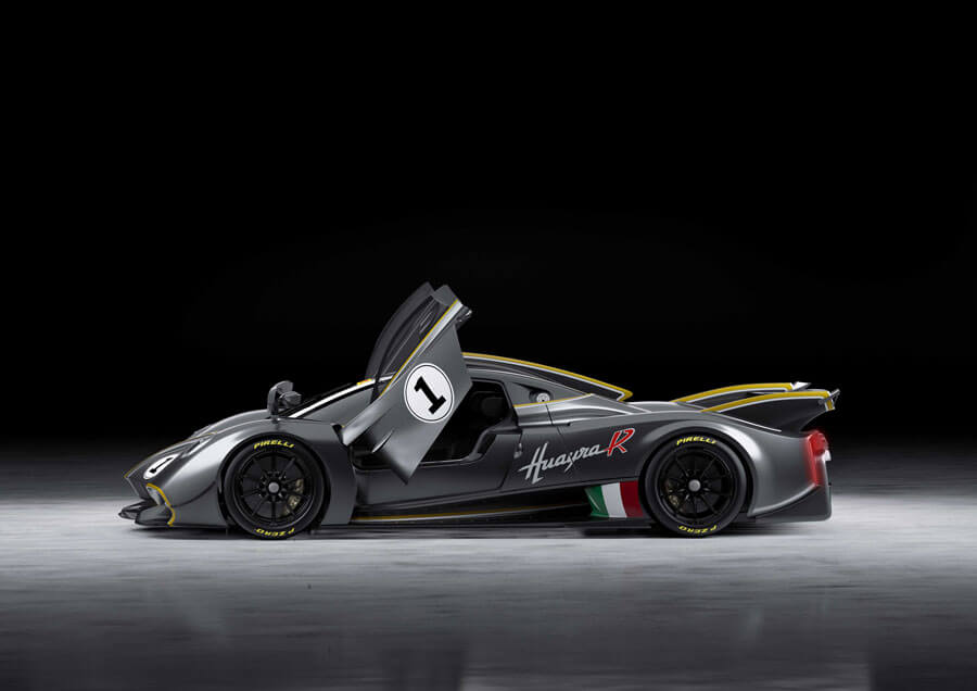 這具名為Pagani V12-R的賽車用引擎委由HWA所開發,這家公司就是最早成立AMG的兩位創辦人之一在公司售予賓士之後另行成立的公司,主要承接AMG參加DTM與GT賽事營運及賽車開發工作。這具自然進氣6.0升V12引擎在8250rpm可輸出850匹最大馬力及76.0kgm/5,500-8,300rpm峰值扭力,最高工作轉速達9,000rpm,搭配賽車用六速序列自手排,工作壽命為行駛10,000公里需進行大保養的同時,更因應Pagani對性能方面的需求,整具引擎的重量只有198公斤。排氣系統更特別為了展現V12的聲威,採用航太材質的Inconel 625/718 alloy(英高鎳合金)製作,另外並輔以陶瓷塗裝,如此搞剛就是要讓每一位車主坐進車內催動轉速時,可以享受鋪天蓋地的終極感官體驗,哦,對了,即便如此Huayra R依舊符合了FIA對賽車噪音及廢氣排放的標準。