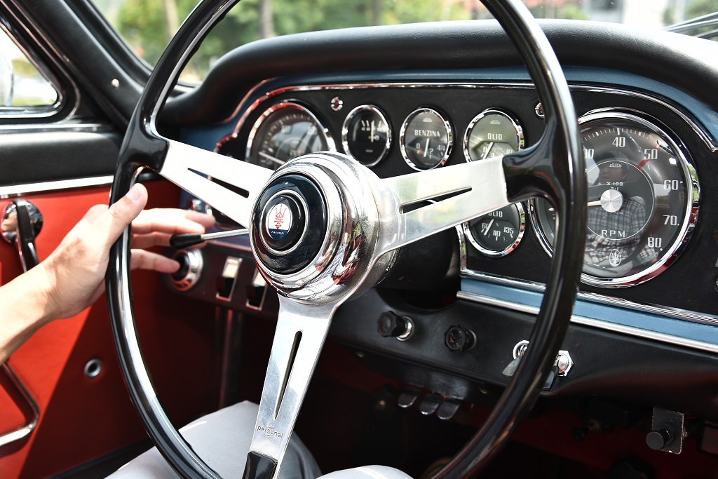 看著隨行的GranTurismo MC Sportline再看看Sebring 3500GT,兩部車相隔半個世紀,試著想想’60年代當時的科技環境,照片是黑白的、電視是黑白的、太空人還吊著鋼絲練習上月球後要怎麼走路、音樂放著披頭四、明星花露水才剛推出沒多久,這時再來看方向盤沒有動力輔助這件事,應該也還好,用相同的標準仔細瀏覽車內的所有配備,電動窗、Jaeger製作的儀錶與計時器,還有純手工車縫的頂級皮革座椅,均為一時之作。