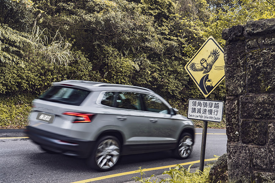 如前所述,這次與小熊的重逢使我再度想起當時與它在綠島巧遇梅花鹿的往事。不過,想在高樓林立的台北重現那時候的情景並不容易。於是,我便向攝影阿加提議,不如到陽明山瞧瞧會發生什麼特別奇遇吧!就這樣,在朝目的地而去的途中,Karoq底盤低重心的特質首先就讓它活像一部富有年輕活力的五門掀背,而有別於Kodiaq與Kamiq兩位家族成員,調校相對硬朗與運動化的懸吊避震設定,亦使得它開起來確實還頗有幾分性能鋼砲的味道。