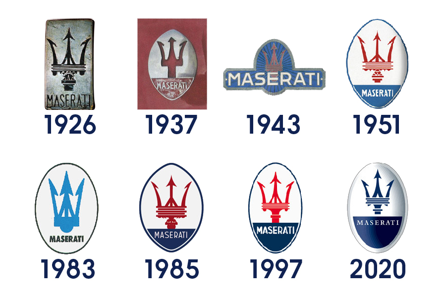 隨MC20又有所調整,三叉戟造型更精瘦,Maserati字體也改為更現代的風格,並以全藍色呈現。
