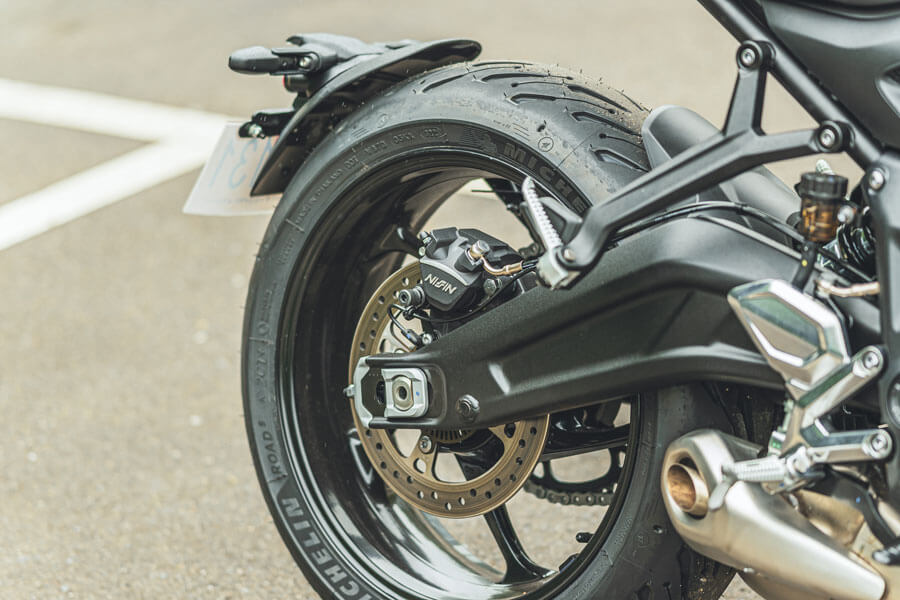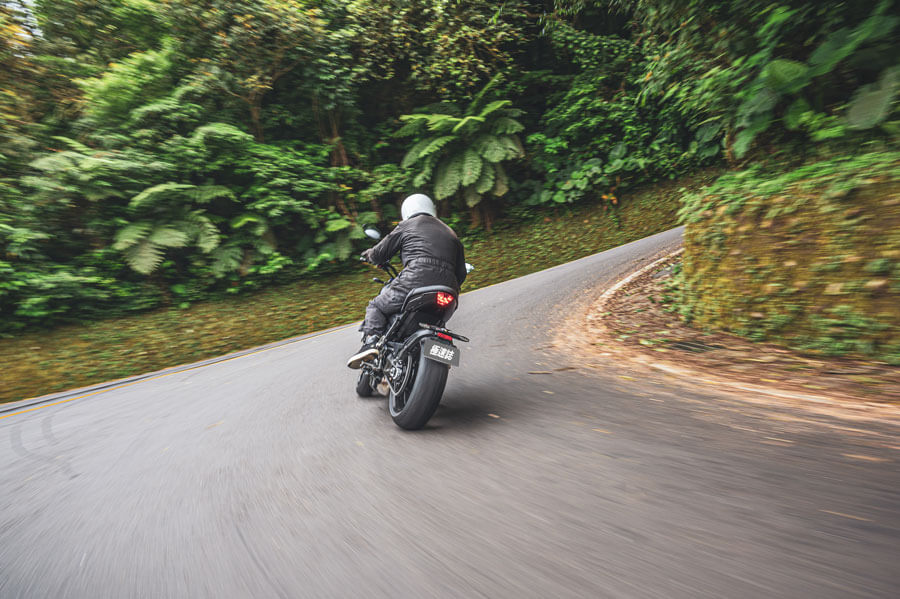 腳下功夫同樣可圈可點,在山路間以2~3~4檔隨彎角弧度快速切換,快節奏連帶讓引擎唱功變的妙語如珠,令人好不痛快,真的是一部輕盈快車,而且加速威力即便突破極限也不會顯得過火。由於前後避震的動作淡定沉穩,你自然可以產生更強烈的信賴感,前叉及把手平穩且高速全無擺動之弊,完全沒有浮現入手後需升級或改裝的念頭,這筆錢大可省下來當作置裝費。