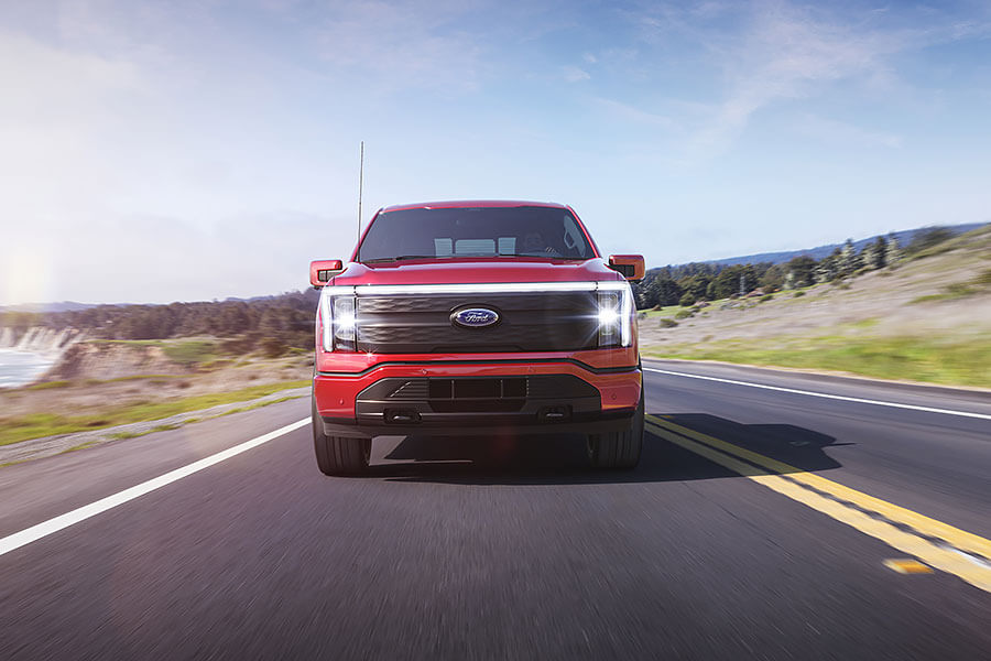 效仿品牌另外一款電動車Mustang Mach-E的命名方式,全新電動版F-150同樣也向1990年代後期的V8學長F-150 SVT Lightning借用它響噹噹的名號,因此才會有F-150 Lightning如此既符合電動車型態,同時又享有雷霆萬鈞氣勢的車名出現。當然,F-150 Lightning也不只是車名強悍而已,其外觀造型也延續了燃油版F-150的家族基因,依舊展現出其王者皮卡不可一世的霸氣。