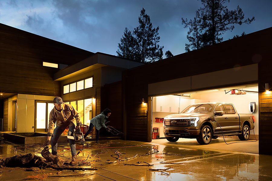 而為了讓車輛能更方便的與拖車連結,F-150 Lightning也配備了能夠輔助倒車與轉向的動態拖車鉤輔助系統。不過,真要說電動版F-150最強大的實用機能,那麼肯定是那套名為Pro Power Onboard System的專業系統發電系統,因為它不僅可透過前行李廂和後斗所設置的一個240V、四個120和兩個USB電源插座專業工具供電,假如住家因天災或人為因素停電的話,其調升至9.6kW的輸出亦能充當臨時發電機,提供最多三天的家庭所需用電。