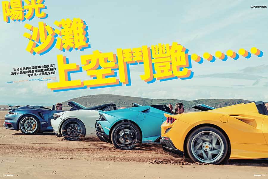 「你知道嗎……」正當大伙兒望著Rowan風姿卓越走過沙灘,有人吹鬍瞪眼地說:「大叔老矣,再難用黃色法拉利賣俏。」這番言論當然觸發了一場激辯,最終結論是這種賣俏以三十五歲為限。如果選用海軍藍色,也許可以加把勁賣俏賣到不惑之年。同一道理亦適用於林寶,不過得額外附加一個條件——閣下必須生來矮又小,否則頭部會像打鼴鼠遊戲的鼴鼠一樣凸出於擋風窗上。至於麥拉倫,稍為成熟一點亦無妨,保時捷則是老到行將就木也相宜。