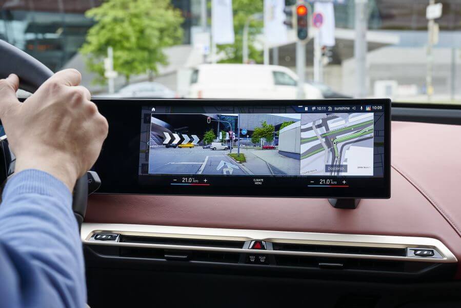 除了動力之外,兩車也全數配置了iDrive 8多媒體平台,一體式的雙螢幕為儀表區12.3吋、控台區14.9吋的組合,雖然環艙式設計是BMW在概念時期相當強調的設計,不過實作表現上倒是與賓士前段時間慣用的組合有點類似,不過在iX上的懸浮鏤空支架設定的確有較為不同的質感。另外在內部功能方面,新式的實景導引功能也加入其中,整個系統也更強調實際觸控回饋與自然語言,同時My mode功能將會配合預設的行車模式進行整個顯示圖像的調整,希望強調更一致性的駕駛氛圍,當然,透過5G通訊機制,整體的聯網能力與OTA自主更新也會更加方便。