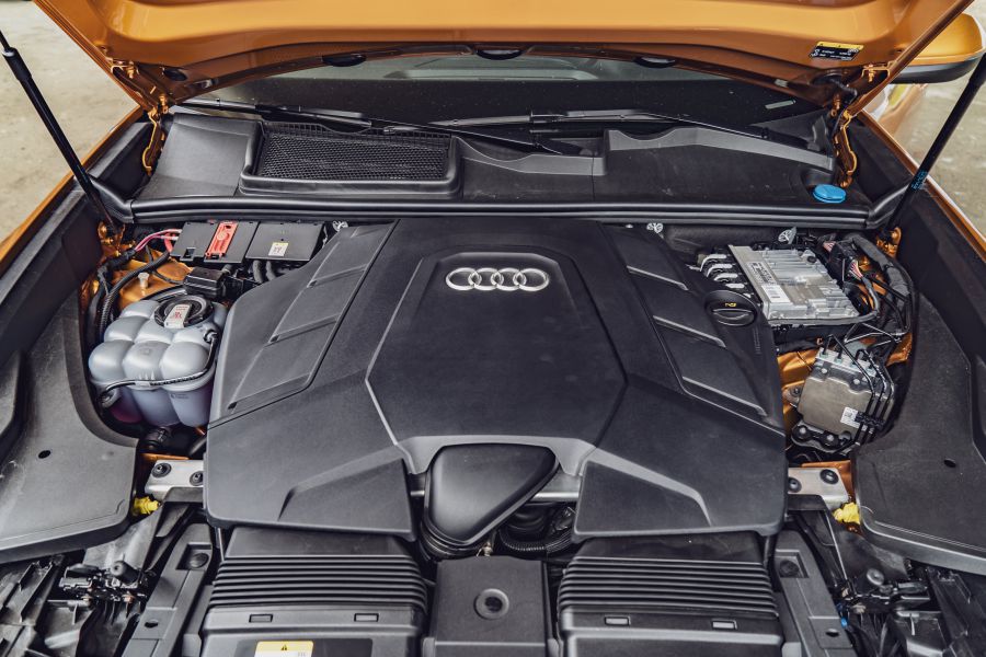 當然,超過50公斤的扭力輸出還是很有看頭的,特別是急加速的第一下馬達能減輕2噸多車重的笨重感,V6引擎隨後銜接出順暢加速感,不是那種猛然衝出的氛圍,而是能持續堆疊加速力,配合四輪可變懸吊又同時保持車輛在一種平靜的狀態下,這點在Q5之上也有類似感覺,我想奧迪也許是在發展電動車的同時,也同步更認真的去研究動力曲線這回事,讓搭載引擎的奧迪與裝上馬達的奧迪,能做到開起來沒有明顯差異的感受,這或許也是另一種品牌特色,而且也不會讓上門的顧客顧此失彼。