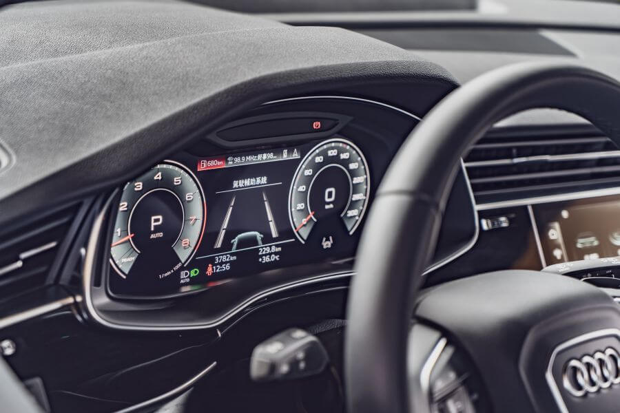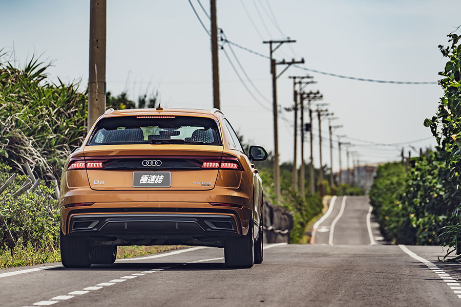 Q8目前僅提供55TFSI quattro的單一車型,基本上與大部分同級車款走得是相同佈局。3.0升V6渦輪引擎搭配48V電力系統這套讓我當初在海外試駕A6時留下深刻印象的動力系統總算是能夠在國內與大家相見,但只可惜也是沒能發揮這套動力系統在當時算是各品牌中率先使用48V系統,讓大家感受到獨立電力系統的好處。為了躲避最近因為肺炎造成的環境混亂,我輩也一路往平時便人煙稀少的西濱一帶走。這套動力系統的運行節奏可說是相當平穩安定,跟我記憶中的印象絲毫沒有改變,引擎的啟閉切換來得毫無破綻,一路在快速道路或是高速公路上,我只覺得維持在法定速限行駛,這具引擎可能只用上了不到20%的功力,8速手自排的齒比綿密度與延伸性讓轉速始終沒有超過1跟2數字格的一半,再加上隨著路況許可的自主熄火滑行控制,車身就似乎一直在馬路上漂流,這感覺好像是馬路自己像傳輸帶一樣一直把我往前運送,一直到踩下煞車時出現了一些動能回收與實體煞車之間切換在煞車力道有些不同,才算是把我拉回實際狀況,原以為上次e tron已經夠平順了,結果Q8的柔順感似乎更上層樓。