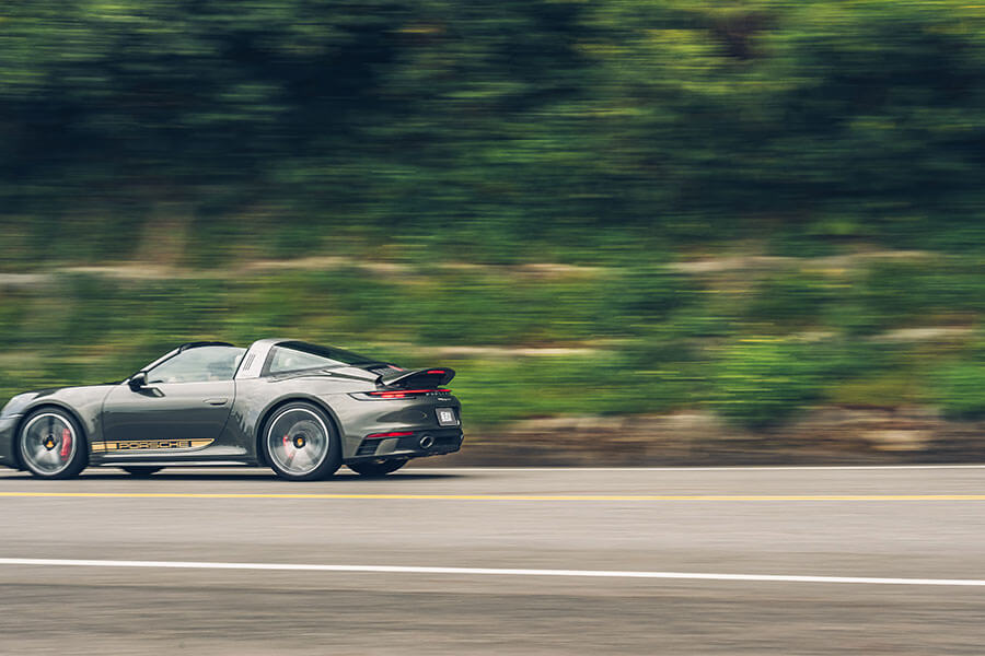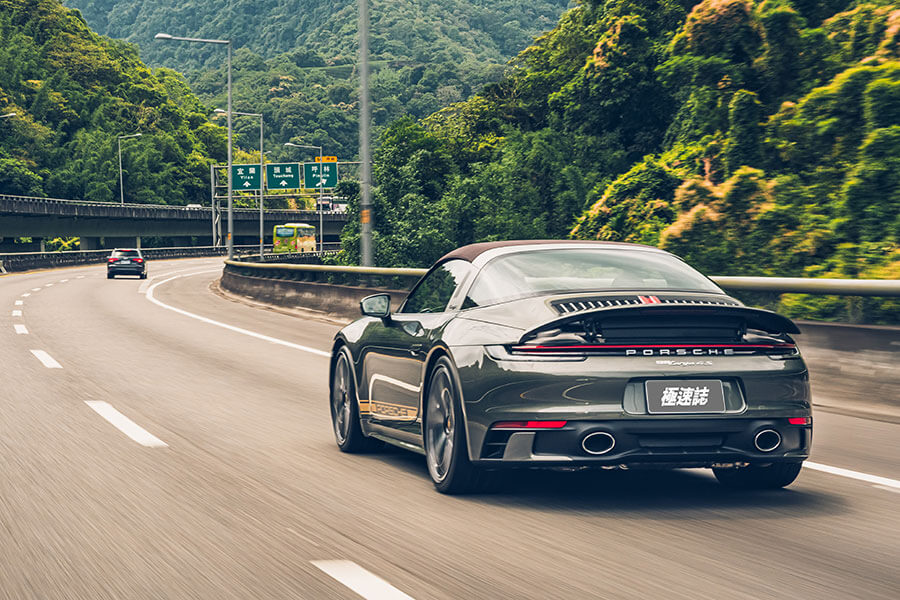 992 Targa的動力規格大致上也是蕭規曹隨,整體延續3.0升六缸雙渦輪的機制,台灣則僅提供最高規450匹最大馬力的4S車型,最重要的變動就是那具8速PDK變速箱,不過同時我也注意到整個動力曲線變得更加積極流暢。這主要是Targa因為整個後半部的敞篷機構,使其成為Carrera S車系中重量最高者,我在991世代曾明顯感受到重量帶來加速力趨緩,特別是一般行駛時有明顯的沉重感,992似乎把這個問題給消弭不少,這點我想是歸功於扭力曲線更平原化,而8速PDK在日常行駛的對應積極度更突出,很清楚地會以檔位先行對應適切的轉速;這點在速度拉快之後更是明顯,很多時候我並不需要出手控制檔位,Sport+模式的升降檔手法彷彿是一位山路老手在從旁協助你,甚至會讓人感到有些興奮過頭的感覺,進而切入手排模式讓自己心情和緩一些,你沒有看錯,我是利用手排來放鬆山路上不斷想持續向前衝的911。
