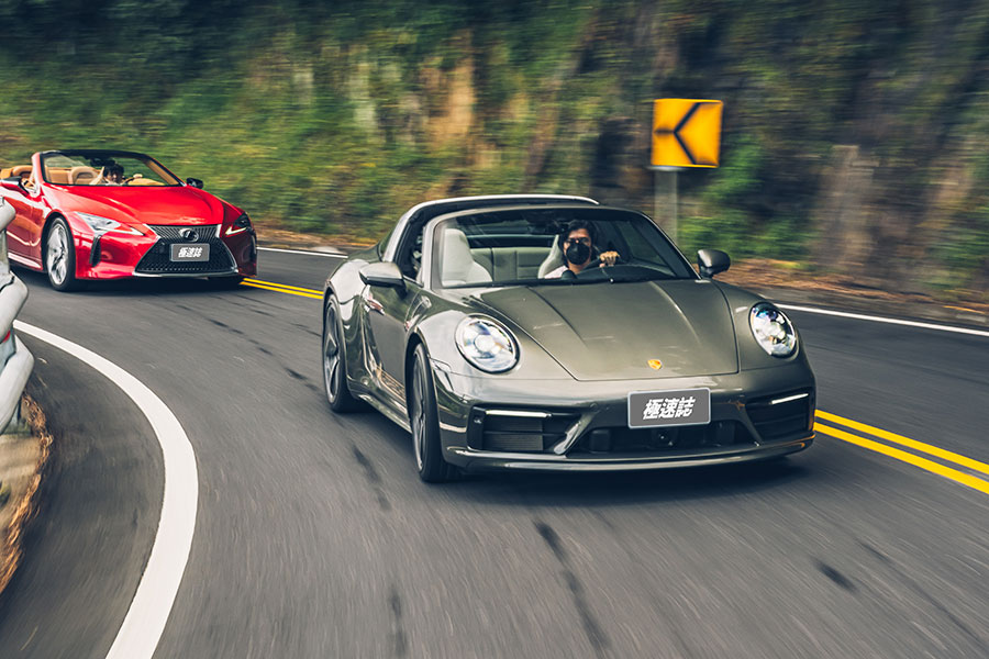 用理性的速度範疇來看,LC 500 Convertible的魅力確實高於992 Targa 4S,不管駕駛或乘客都會被那V8歌聲迷的心醉神馳,而且入彎前挑動手排撥片降檔還會觸發補油的一聲巨響,這在現今的小排量渦輪增壓潮流中,更加凸顯凌志的獨到之處,V8自然進氣抑揚頓挫的唱功好不悅耳,但閣下若是控制狂,顯然LC 500 Convertible的醉人程度確實相對低了許多。