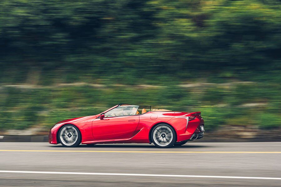 凌志5.0升自然進氣V8的激昂歌聲不斷在山谷間迴盪,儘管敞篷版沒有像雙門款那樣紮實,不過單就歌藝而言,車頭那具V8無疑比對手更加有聲有色,亦凸顯LC 500 Convertible的獨特韻味。
