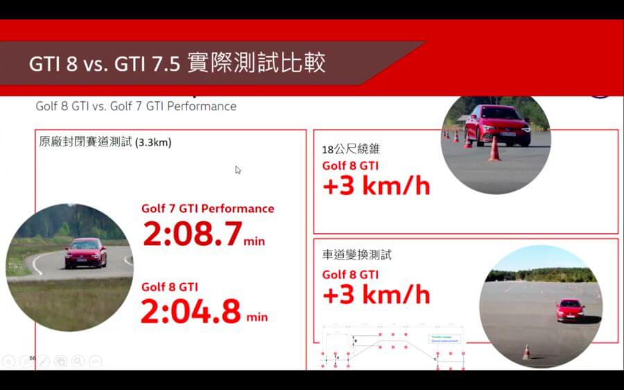8代GTI雖然表面上看起來沒有太大的性能進展,整體開發也是以7.5代 GTI Performance為基礎進行研發,不過新車新增VQR液壓前軸差速器,配上XDS輪速差控制以及DCC主動懸吊的三方合體控制,再加上彈簧襯墊的硬體調整,廠方自行地封閉賽道測試新車可較7.5代GTI Performance快上三秒,看來在維持245匹/37.8公斤米的同等輸出下,GTI如同自家集團高階跑車因電控升級帶來操控強化的科技優勢。