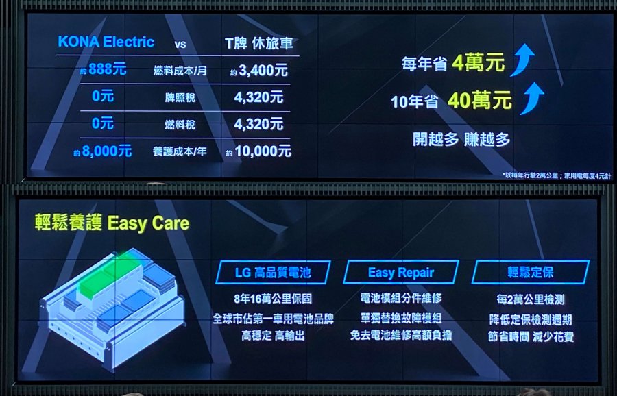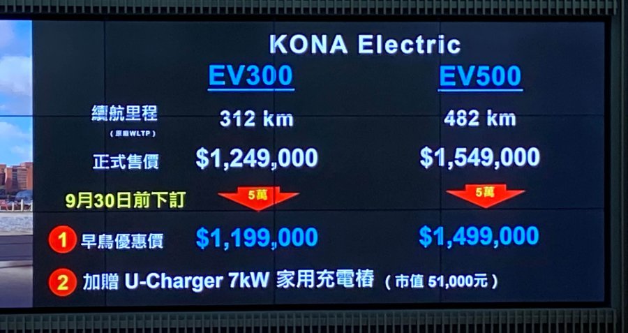 為了讓消費者對現代首次於國內販售的純電EV建立好印象,採取了高CP值、最親民的價格策略,讓消費者可以輕鬆入主人生第一部電動車。這次的Kona Electric提供了兩種規格選擇,標準款EV300建議售價124.9萬元,增程型EV500建議售價154.9萬元。另外廠方也提供早鳥優惠,售價減五萬元並加贈價值5.1萬元的家用充電樁,以性能規格及售價來看,有其競爭力!!