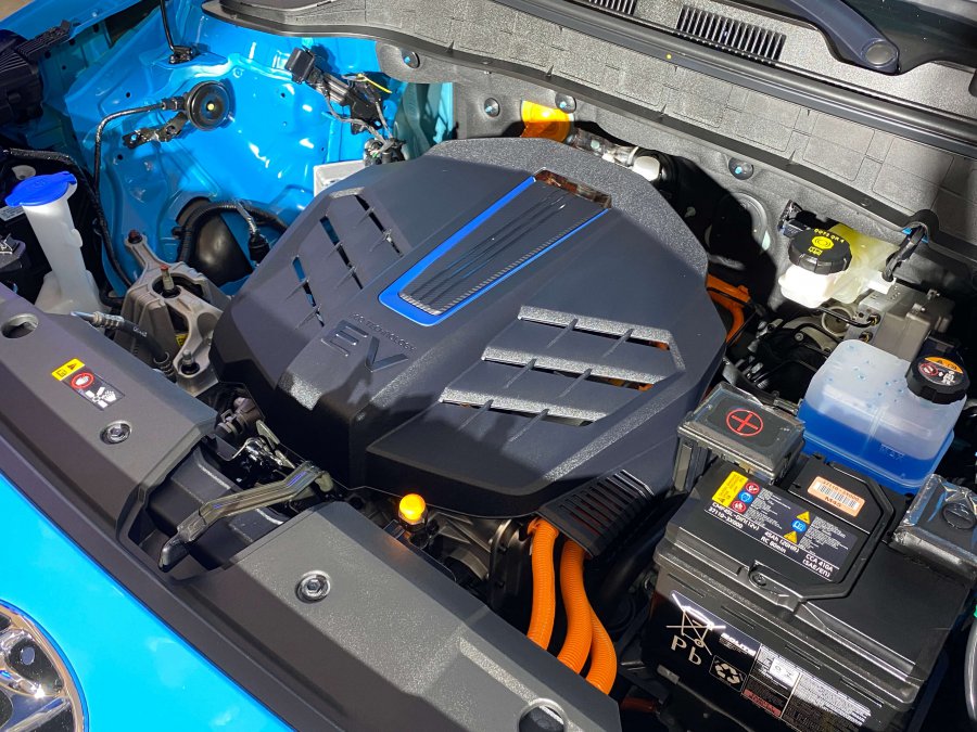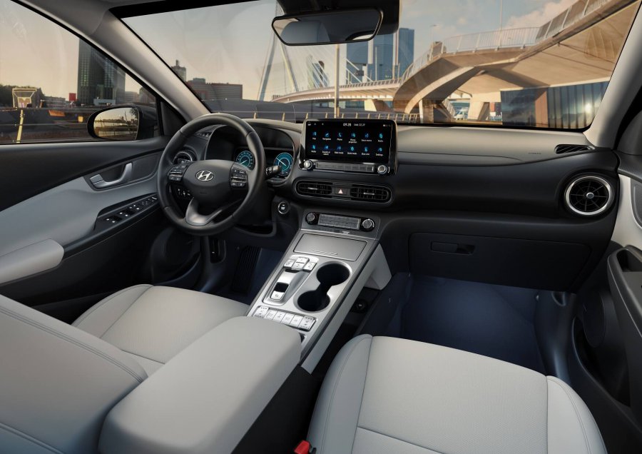 有別於燃油款的車頭造型是Kona Electric的主要特徵,一體成形的水箱護罩,流線的圓潤車頭左前預留專屬充電座口,輔以醒目分離式後延飛翼頭燈組及外擴式輪拱,凸顯Kona Electric的獨特性。內裝搭載全新10.25吋數位車資顯示幕與8吋懸浮觸控多媒體系統,鞍座上的按鍵式檔位設計亦是Kona Electric的主要特徵之一。安全科技全面將HYUNDAI SmartSense的15項先進主被動功能列為標配,具備Level 2半自動駕駛輔助功能。