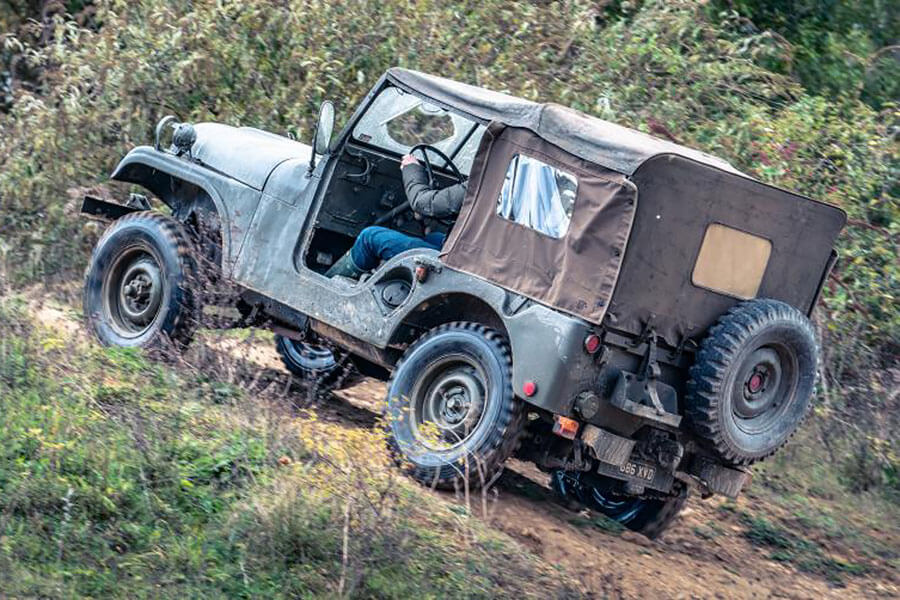 沒錯。憑藉變化多端的車身(從救護車到106mm無後座力步槍的流動射擊平台,七十二變未能盡錄)和踏破任何地形的能力,這部吉普就算按今天標準來說仍然是本領非凡的機器。它所載的四汽缸2.2公升汽油引擎(別稱Hurricane)力能產生72hp,可以選擇兩輪或四輪驅動,並設有一個low-range加力箱,加上相對瘦削的輪胎和輕盈重量(1,225kg),幾乎可以踏破任何地方。這副引擎出奇好力,在柏油路可以開到80km/h左右。阻礙它達到更高車速的原因與其說是動力不足,不如說是車頂可能當場飛脫。此外,前後懸吊一律使用葉片彈簧雖然代表下盤十分紮實,但肯定談不上舒適,Defender與之相比簡直舒適到好像勞斯萊斯。