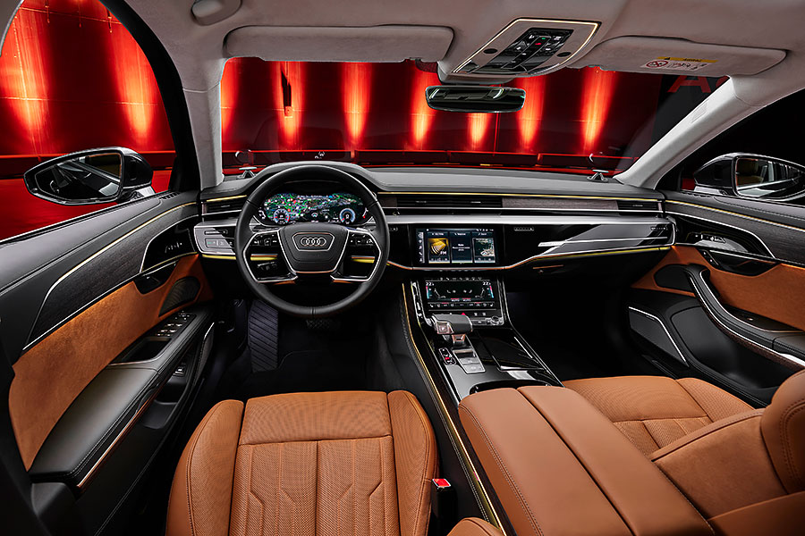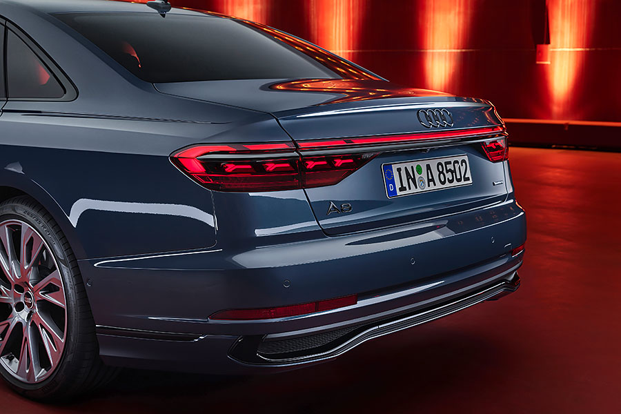 在這些基本架構的調整外,A8也首次新增S Line外觀套件可供選配,搭配前面提到的黑化處理也會讓新車帶來更多不同的視覺特色。當然奧迪也沒忘記老本行的燈光技術,新車在頭尾燈全數升級OLED燈組設計,除了車輛本身的迎賓燈光秀之外,新的頭燈也設計了投影式的動畫,實際在照明表現方面也有同步提升,基本的主動防眩自是必然,這次還另外加上了換道預先照明以及遇到車道施工的特殊強化照明效果,後者將會增加目前行駛車道以及各項施工標誌的照明亮度,讓駕駛人更清楚的知道行駛路線。