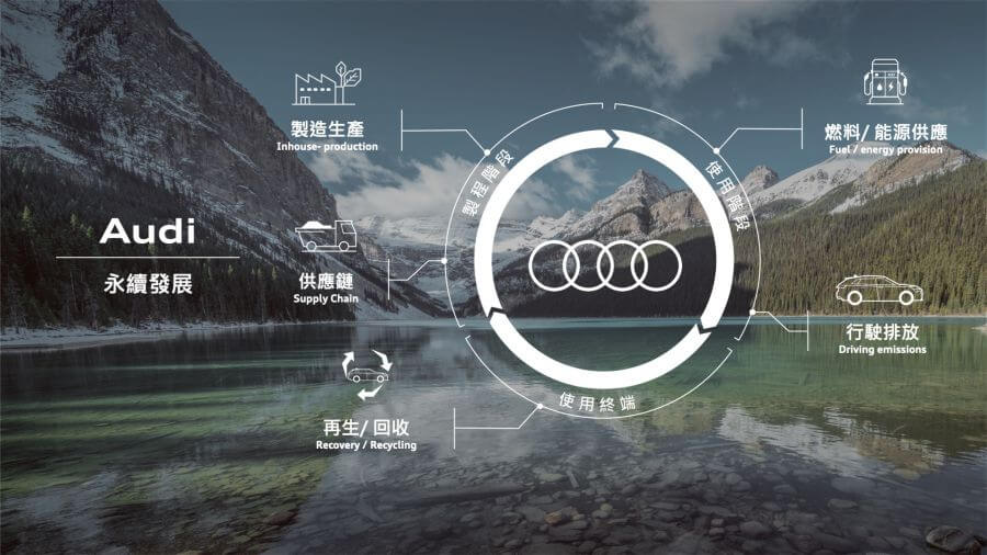 而透過永續生產而成的Audi e-tron GT,於外觀及內裝細節上亦能看到永續的身影,首先鋁圈採用減碳方式製成;而針對車室內特別推出環境友善「新未來零皮革套件」供選配,運用人造皮革與Dinamica超細纖維材質妝點車室設計,且可額外搭配環保不織布座椅,由PET保特瓶、超細纖維與再生尼龍纖維等材質再造而成。Audi 所強調永續發展的終極目標,即是從汽車製程階段、到消費者用車過程,以至於未來使用週期終端的電池回收與再生,整個循環過程體現永續價值。