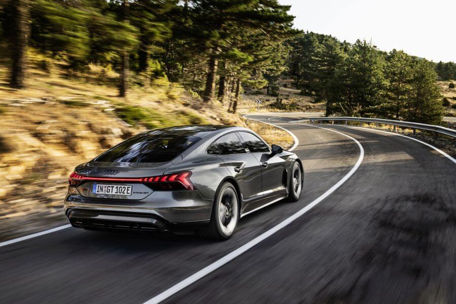 Audi技術團隊更運用縝密的工程調校,賦予Audi e-tron GT與Audi RS e-tron GT有別於一般跑車的獨特駕馭感受,其採用兼顧舒適性與運動化的底盤設定,車內搭載新型二速變速箱(一檔用於起步加速、二檔高速使用),另透過三氣室主動式氣壓懸吊系統,車身可自動調動,最高向上調升20mm及向下調降22mm,並藉由中央控制元件,每個氣室懸彈簧可自動獨立運作,與車身阻尼完美結合運用,以適應不同的駕駛情況,給予舒適的行車體驗。另一關鍵則為動態全輪轉向系統,於低速時後輪可作反方向轉向,於時速50公里內提供最多轉向2.8°度,藉此減少迴轉半徑、提升轉向性使車輛更靈敏,而時速80公里以上高速行進時,後輪則進行同方向的轉向作動,有效提升高速穩定性以及轉向精準度,隨時提供優異操控性。