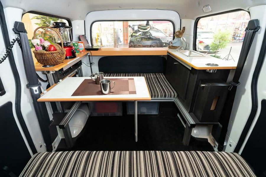 不過Town Ace雖定位為商用車,但我們也發現日本當地的豐田經銷商因應露營風潮的市場需求,推出了經過客製改裝的露營版,從改裝二字就知道這並非生產線直接組裝的量產版,而是提供消費者新車購入並直接改裝的一條龍銷售服務,這款由豐田經銷商與戶外露營配件業者Altopiano合作開發的露營版稱為Town Ace Camper Altopiano,消費者訂購新車後會交由業者進行包括車內的座椅彈性變化,住宿、電力、廚具及盥洗等配件的加裝,亦可針對個人需求追加其他改裝服務,日本當地成車的基本售價為273萬元(日幣)起跳,比標準版Town Ace多出約一百萬元(日幣),換算台幣的價格還是相當吸引人,若以國產版的售價推估,再加上改裝,相信怎麼算都還是會比福斯加州動輒兩百萬元起跳要親民的多。